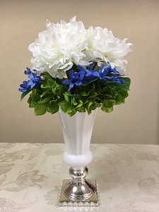 白の優しいシルクフラワーでちょっとおしゃれにアレンジしてみましたどなたさまも簡単にアレンジできますよ! |